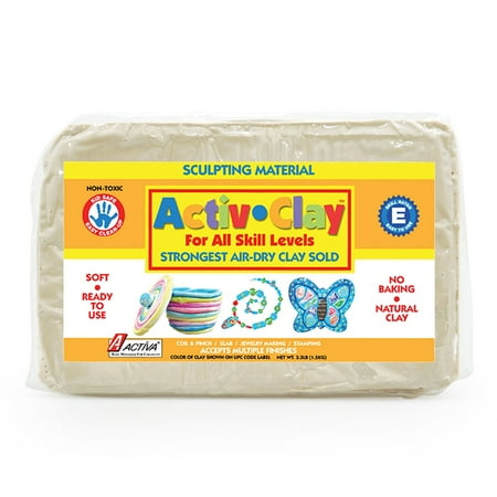 ACTÍVA s Activ Clay is an air drying clay which is fine grained to enable the finest detail for all art and craft projects. This strong self-hardening clay is perfect for all levels of sculptors as it allows for many clay sculpting techniques from hand building to throwing and accepts a wide variety of finishes. Activ Clay can be carved nailed and sanded. This lightweight clay generally dries within 24 hours and can be kept for weeks when placed in an air tight container. Each pack includes 3.3 lbs. of white Activ Clay Air Dry Clay.