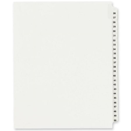 Dividers are ideal for index briefs legal exhibits mortgage documentation files and more. White paper stock features clear RipProof reinforced side tabs that are printed on both sides in Avery Style (Helvetica bold type). Binding edge is unpunched so indexes can fit any binding system. Avery Standard Collated Legal Exhibit Divider Sets – Avery Style 25 / Set (Quantity)