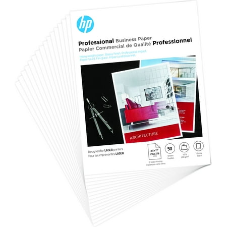- At amazon.com you can purchase HP Professional Business Paper, Glossy, 8.5x11 in, 52 lb, 50 sheets, works with laser printers (4WN11A) for only 0.00
