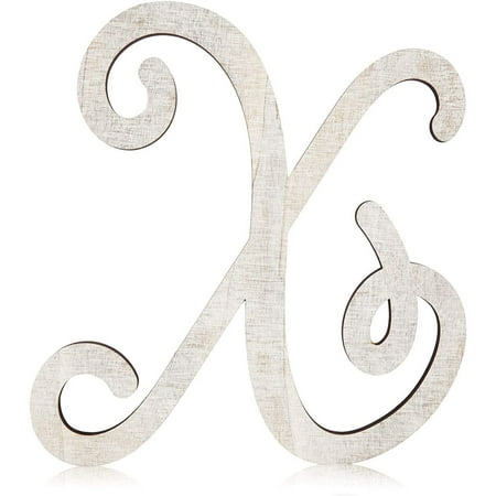 Item Description Use this cursive letter X to design and create a personalized welcome sign letter wreath and monogram wall decor for your front door kitchen living room or nursery. The elegant cursive design is ideal for centerpieces party signs or photo booth props at an upcoming rustic wedding baby shower or birthday. The wooden initial letter stands 13 inches tall and has a smooth unfinished poplar plywood surface that can easily be customized with ribbon lace glitter and wood stain.