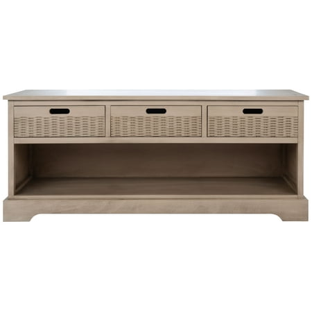 Shop Safavieh at Walmart. Save Money. Live Better. SAFAVIEH Landers 3 Drawer Storage Bench Sand A versatile stylish storage solution that performs double duty as additional seating in any room this Landers Storage Bench is an icon of classic contemporary design. Landers’ soft sand finish seamlessly accents any décor while its three basket drawers and open bottom shelf provide ample space for everyday necessities. This bench is the ideal piece to be used as extra storage while adding charming décor to any space.