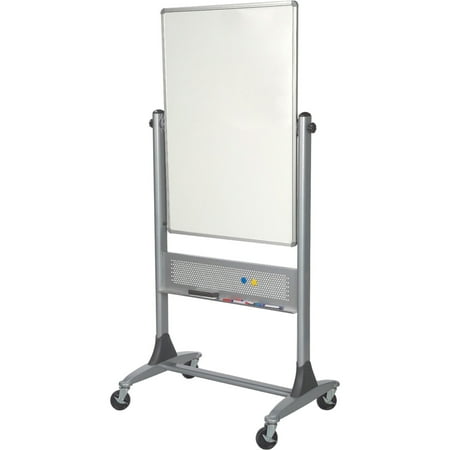 Reversible board is designed for presentations meetings and training with twice the writing or tack surface of a traditional wall-mounted board. Surface rotates 360 degrees on a pivot hinge and locks into place with the turn of a knob. Board has a magnetic porcelain surface on both sides and anodized aluminum trim. Wide-base design offers stability and includes 3 locking casters for mobility. MooreCo Magnetic Porcelain Rotating Markerboard 1 Each (Quantity)