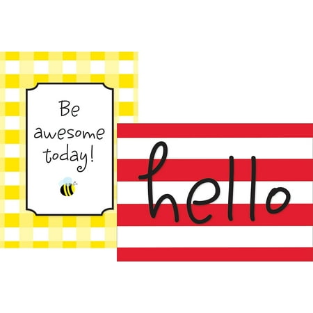 Our Hello! You re Awesome poster duet set includes two beautifully designed motivational posters. Perfect for office classroom and home use each poster measures 19 high x 13-3/8 wide. The posters are part of our Buffalo Plaid Wide Stripes curated collection. The first poster features very on-trend wide red and white stripes and states a welcoming Hello . The second poster also features a very on-trend design of yellow buffalo plaid and this poster states Be awesome today . This poster has an adorable bee at the bottom of the saying. The posters are printed on durable 12 pt. stock and whether you choose to frame them or simply hang them as is they are stunning. • Set includes two 13-3/8 x 19 posters. • Suitable for framing. • Printed on 12-pt poster board. • This product is manufactured by a certified WBE (women owned business). • This product is manufactured by a certified SBE (small business enterprise). • Sold as 2/Set.
