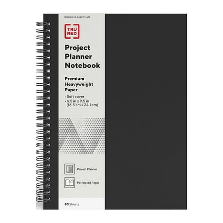 Organize tasks record target deadlines and create actionable item lists with this TRU RED™ medium black project planner notebook.A double-coil binding system allows for effortless page turns while the cover stands up to frequent handling. With 80 sheets of premium heavyweight paper inside this TRU RED™ medium black project planner notebook offers abundant space to record your work progress. Medium size (6.5 x 9.5 ). 80 sheets of paper provides plenty of space for notes. Black flexible coated-paper soft cover. Take meeting notes and business records in this professional notebook. Wirebound for added durability. Perforated white pages allow for easy sheet removal. Interior pocket lets you organize your way. Premium Heavyweight Paper. Sold as 1 Each.