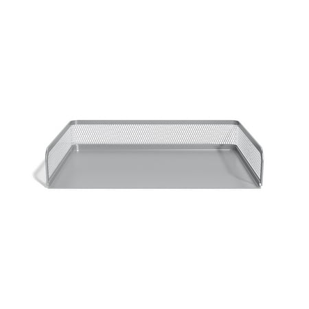 Contain paperwork for later review with this TRU RED™ side-load silver-colored mesh tray.Create a customized organization system with this letter tray. Flat square-rounded edges bring a sleek look to your workspace while the vertical stacking design allows for a more personalized setup. This TRU RED™ side-load silver-colored mesh tray features a metal base for durability and feet to protect against desk scratches and slipping. Stackable side-load letter tray helps keep your desk and papers organized. Create a custom tiered desk organizer when stacked with other TRU RED™ desk accessories. Each tray measures 9.84 L x 12.99 W x 2.76 H and holds up to 8.5 x 11 sized paper. Load capacity: 540 sheets of 20 lb. paper. Tray feet prevents slipping and scratching when put on top of desk. Flat square-rounded edges offer a sleeker design aesthetic. Sold as 1 Each.