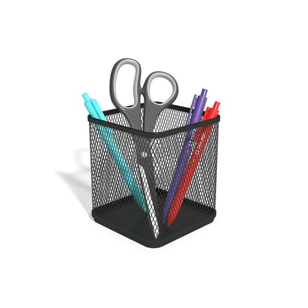 Put pens pencils and other supplies within easy reach using this TRU RED™ mesh pencil cup.Keep your workspace organized with this black mesh pencil cup. A single compartment keeps writing utensils and small office tools in one central location and the stackable design works with other pieces in this collection to create a complete office supply storage system. The square design with flat rounded edges gives your desktop a contemporary look. This TRU RED™ mesh pencil cup features tightly woven mesh construction for added durability. Use this pencil cup to keep writing highlighters pencils pens at your fingertips. Create a custom tiered desk organizer when stacked with other TRU RED™ desk accessories. Measures 3.46 L x 3.46 W x 4.33 H. Rounded edges offer a sleeker design aesthetic. Sold as 1 Each.