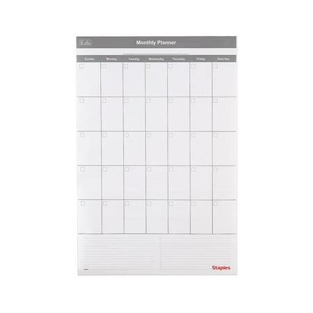 • At staples.com you can purchase Staples 24" x 36" Monthly Dry-Erase Wall Calendar, Reversible, White/Gray (ST60365-22) for only