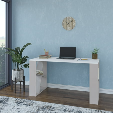 Plenty of desk space within a unique modern design Brian is sure to not only make a fashion statement but provide the much-needed desk space for all home and office environments. Various color options allow this piece to stand-out in any home or office while being at a functional depth of 24 inches and a height of 30 inches with a width of 55 inches. Ada Home Decor Furniture 2 Tier White Light Mocha Brian Modern Desk is ideal for anywhere you need a compact option for writing reading and more and features enough space for your supplies and even decorative items books magazines and more. You can create a work station even with a small space in your bedroom living room.
