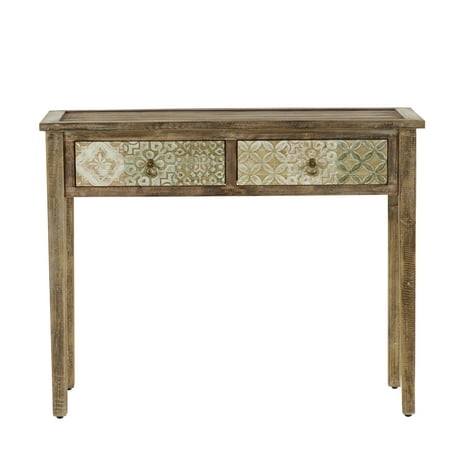 DecMode 31 x 40 Brown Metal Farmhouse Desk is a unique addition to your stylish home. Keep your work table space organize and chic with this spacious work desk. Ideal for office work and school with slender look for compact friendly spaces. Decorate this rectangular console table in your entryway under a round wooden mirror for the perfect rustic look. This item comes with mounting hardware to prevent tipping. Designed with felt or rubber stoppers at the base that prevent scratching furniture and table tops as well as sliding around. This item ships in 1 carton. 2 drawers that both measures 14 in depth. Suitable for indoor use only. Some assembly required. Maximum weight limit is 100 lbs. Farmhouse theme.
