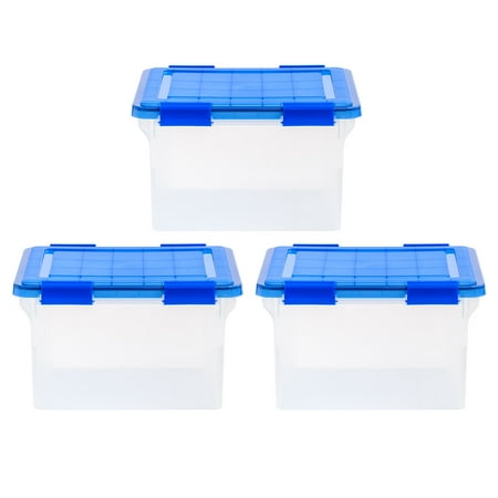 The IRIS USA Letter and Legal Size Plastic File Storage Box with WeatherPro™ Lid is a durable protective storage solution for your valuables and important documents. These WEATHERTIGHT letter / legal sized file boxes will keep your papers and documents safe clean and moisture-free. Four heavy-duty buckles keep the storage bin lid securely in place while the clear plastic container allows you to easily see your stored items. The reinforced tote boxes with lids are easily stacked together so you can maximize your storage space.