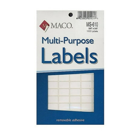 • At walmart.com you can purchase Maco Multi-Purpose Handwrite Labels Rectangular 3/8 In. X 5/8 In. Pack Of 1000 [Pack Of 6] (6PK-MS-610) for only
