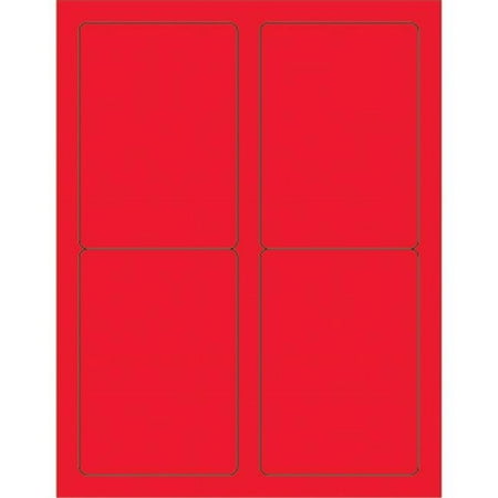 Use to create your own product or mailing labels. 3 1/2 x 5 Fluorescent Red Rectangle Laser Labels. Use to create your own product or mailing labels. Labels work with both Laser and ink jet printers. Permanent adhesive. Labels stick to a variety of smooth surfaces including paper corrugated plastic wood glass and metal. • Labels stick to a variety of smooth surfaces including paper corrugated plastic wood glass and metal. • 3 1/2 x 5 . • Red Rectangle Permanent Acrylic. • Permanent adhesive. • Fluorescent Rectangle Laser Labels. • 400 labels per case. • Labels work with both laser and ink jet printers. • Sold as 400 Per Case.