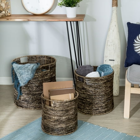 You were wondering how to organize your room when you moved into your new apartment. It was small after all and closet space was at a premium. Luckily these Nesting Storage Bins from our Coastal Collection entered your life to save you space in style. Their naturally woven exteriors neatly fit into one another when not in use. You love how they provide you with extra closet storage and are completely portable with their handsome grab handles. Sometimes they double as bins for extra linens off-season clothing or a new play arena for your cat. Whatever their function you delight in the way their rich brown hue brings big moxie to your sweet little pad.