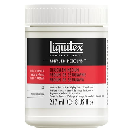 Liquitex Silkscreen Medium 8 oz. Silkscreen Medium transforms water-based acrylic color into printing ink with the ideal consistency for screen and monoprinting. Mix into paint to extend its drying time giving you longer for print application and positioning and give greater flow and fluidity allowing for finer print detail. Liquitex Silkscreen Medium will keep the opacity of the original color.