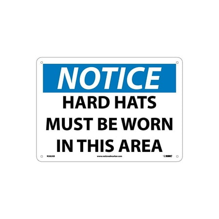 • At amazon.com you can purchase NMC N282AB NOTICE - HARD HATS MUST BE WORN IN THIS AREA – 14 in. x 10 in. Aluminum Notice Sign with White/Black Text on Blue/White Base for only